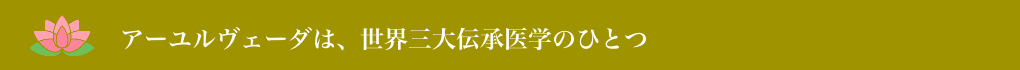 アーユルヴェーダは、中医学・ユナニ医学と並んで、世界三大伝承医学のひとつです。